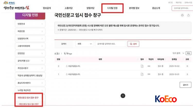 Ãæ³²µµÃ» ȨÆäÀÌÁö ¡æ µðÁöÅÐ ¹Î¿ø ¡æ ±¹¹Î½Å¹®°í ÀÓ½ÃÁ¢¼ö ⱸ /»çÁø=Ãæ³²µµ Á¦°ø