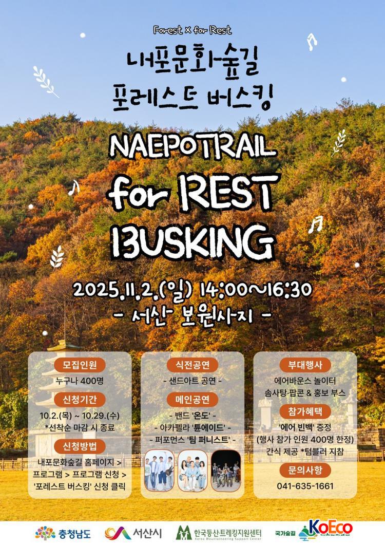 ÀÌ¿ë±æ Ãæ³²µµ »ê¸²ÈÞ¾ç°úÀåÀº ¡°½£°ú ¹®È°¡ ¾î¿ï¸° ¹ö½ºÅ·À» ÅëÇØ µµ¹Î¿¡°Ô È޽İú Èú¸µÀÇ ½Ã°£À» ¼±»çÇϰí, ³»Æ÷¹®È½£±æÀÇ ¸Å·ÂÀ» ´õ ³Î¸® ¾Ë¸®´Â °è±â¸¦ ¸¸µé±â À§ÇØ À̹ø ÇÁ·Î±×·¥À» ¸¶·ÃÇß´Ù¡±¸ç °ü½É°ú Âü¿©¸¦ ´çºÎÇß´Ù.