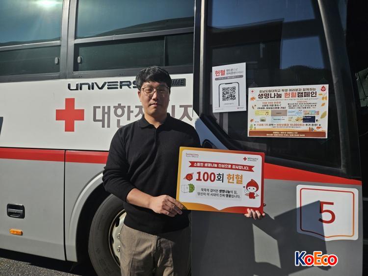 ±èâ¿ì ±³¼ö´Â À̳¯ ´ëÇÐ Ä·ÆÛ½º¿¡¼ ¿¸° ÇåÇ÷ Çà»ç¿¡¼ 100ȸ ÇåÇ÷À» ±â·ÏÇß´Ù.