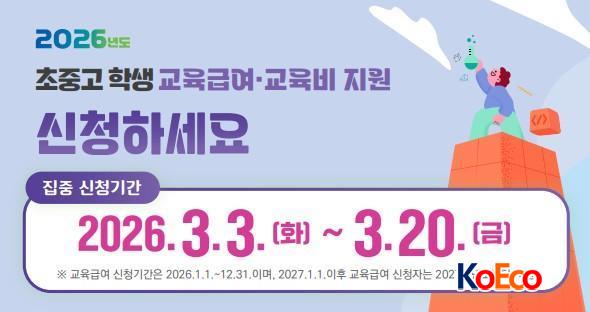 [ÄÚ¸®¾ÆÀΰæÁ¦½Å¹®/±³À°] Ȳ½Å¹Î ±âÀÚ = Ãæ³²±³À°Ã»(±³À°°¨ ±èÁöö)Àº ±³À° ±Þ¿© ¹× ±³À°ºñ ÁýÁß ½Åû ±â°£À» 3¿ù 3ÀϺÎÅÍ 20ÀϱîÁö 3ÁÖ°£ ¿î¿µÇÑ´Ù.